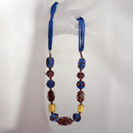 Animal Print Glass Beaded Pendant Necklace - Amber/Stripe design